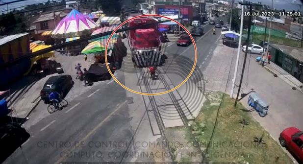Un automovilista prefirió ser precavido y detener el camino, pero un sujeto de playera roja se aventuró a cruzar con su bicicleta. Al acercarse más el tren el ciclista apresuró el paso corriendo, pero fue embestido.