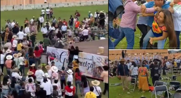 OAXACA. - El diputado federal de Morena, Irán Santiago Manuel, así como personal de su equipo de trabajo, protagonizaron una riña campal durante la Guelaguetza organizada por la Sección 22 del Sindicato Nacional de Trabajadores de la Educación (SNTE) en el estadio del Tecnológico de Oaxaca.