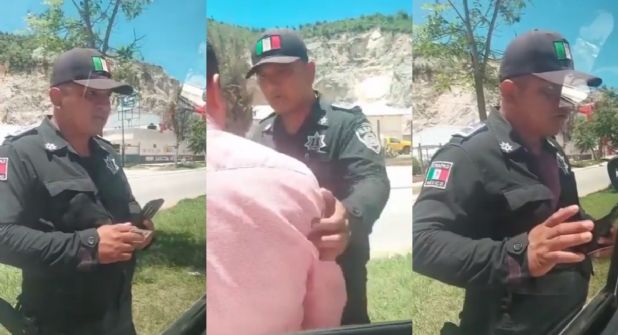 Asimismo, aparece un segundo oficial, quien le recuerda a su compañero si ya se identificó; tras la intimidación, el servidor público le devuelve la credencial de elector y lo deja seguir su camino.