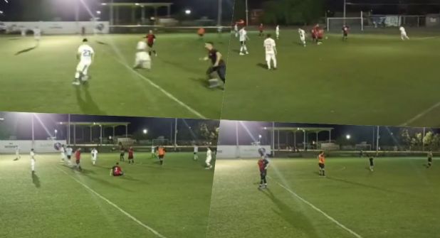 En el video compartido en redes sociales un hombre está grabando y narrando el partido de futbol, de pronto el árbitro inspecciona a un jugador que se tiro en la cancha por una presunta falta, sin embargo, en ese momento se comenzaron a escucharon los disparos, los futbolistas consternados corrieron a refugiarse y a ver qué había pasado.