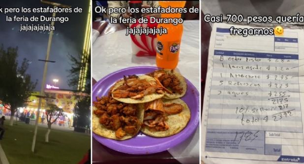 DURANGO.- Acudir a la Feria de Durango 2023 podría ser mucho más costoso para algunas familias a la hora de consumir alimentos. A través de TikTok, la usuaria gagzp15 denunció el intento de abuso en el cobro de unos tacos. De acuerdo con un video que subió a la plataforma china, la cuenta que le entregaron tenía un sobrecosto de 700 pesos, así como el 10 por ciento adicional por concepto de propina.