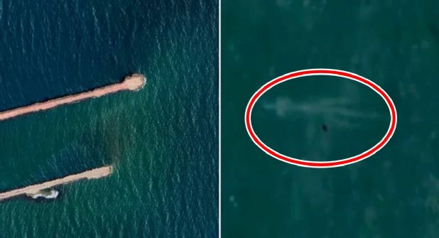 La grabación compartida por el usuario de TikTok @Joe_Gillespie_the_Great se puede ver que en la zona de escolleras de playa Miramar se ve una pequeña embarcación ingresando al Puerto de Tampico; metros más arriba se alcanza a ver la silueta de algo bastante extraño.