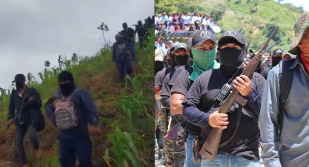 De acuerdo con un video que ha circulado en redes sociales, se observa a gente armada, encapuchada e incluso con chalecos antibala, recorrer montañas y veredas de esa localidad indígena.