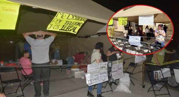 CHIHUAHUA. - Ex colaboradores de la Secretaría del Bienestar en Chihuahua, ubicado en la Avenida Melchor Ocampo, ubicado en la zona centro de Chihuahua, se encuentran realizando una manifestación afuera de las instalaciones de esta dependencia, donde ya se encuentra un campamento, donde un grupo de trabajadores se encuentra bloqueando el acceso.