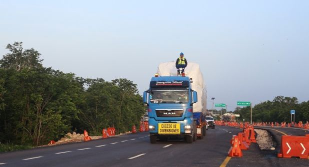 A las 8.30 horas de este sábado, los talleres del ferrocarril concede en Cancún, ubicados detrás del aeropuerto internacional de la entidad, recibieron al tráiler de plataforma abierta que transportaba a la cabina del tren, la cual se encontraba completamente cubierta.
