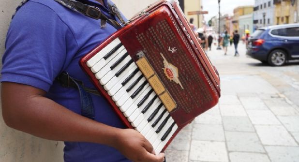 OAXACA.- Llegó al iniciar las vacaciones. Se estableció sobre el andador turístico de la capital de Oaxaca. Con sus manos fusionadas al acordeón va regalando música a los paseantes. “Apenas estoy aprendiendo”, se sincera.