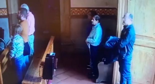 Según las imágenes de la cámara de seguridad fechadas el 20 de agosto, uno de los individuos ingresó al recinto religioso mientras se desarrollaba la homilía. Este se dirigió a las bancas cercanas a la entrada. En el exterior, otro individuo esperaba.