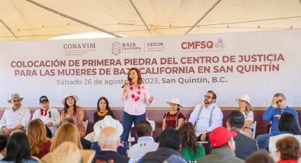La titular del Poder Ejecutivo del Estado encabezó la colocación de la primera piedra del Centro de Justicia para las Mujeres de San Quintín, que será el segundo en toda la entidad y que, en coordinación con el Poder Judicial del Estado que encabeza el magistrado Alejandro Isaac Fragozo López, ofrecerá un esquema de justicia y atención integral a las sanquintinenses que sean víctimas de cualquier forma de violencia.