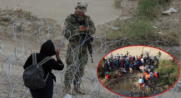 Al no poder entrar a territorio extranjero, un grupo de 150 migrantes montó un campamento en el límite del Río Bravo, justo en la puerta 28, a la altura del monumento “La X” que es el ícono que identifica a la ciudad.