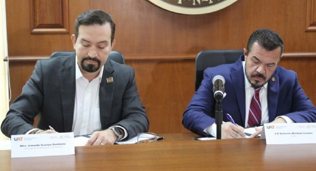TAMPICO.- Mediante la firma de un convenio de colaboración y el desarrollo de una mesa de diálogo, la Universidad Autónoma de Tamaulipas (UAT) y la Procuraduría de la Defensa del Contribuyente (PRODECON) estrecharon la vinculación interinstitucional con el objetivo de fortalecer el sistema tributario y una nueva cultura contributiva en el país.
