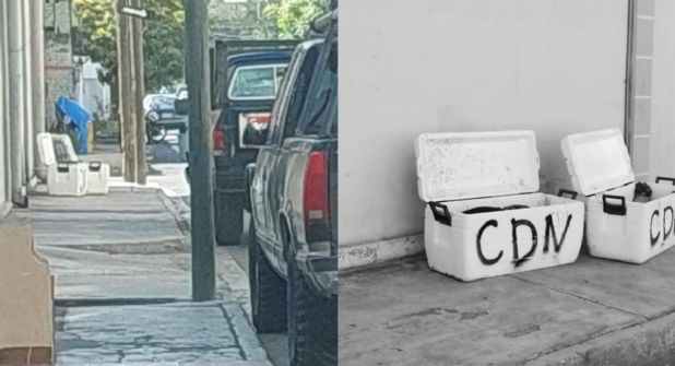 Las autoridades no identificaron a las víctimas, pero confirmaron que en ambos casos se encontraron narcomensajes de un grupo de la delincuencia organizada, ya que las cajas traía las iniciales CDN.