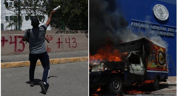 Estudiantes mexicanos, miembros de la Federación de Estudiantes Campesinos Socialistas de México (FECSM), llevaron a cabo protestas en Guerrero, en el sur de México, como parte de las conmemoraciones por el noveno aniversario de la desaparición de 43 estudiantes de Ayotzinapa. Los manifestantes vandalizaron las instalaciones de la Fiscalía General del Estado y prendieron fuego a una camioneta.