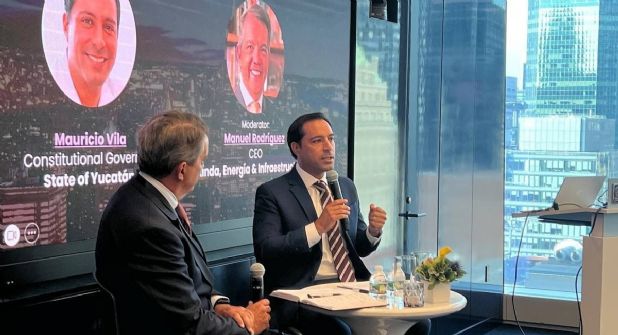 NUEVA YORK.- El gobernador Mauricio Vila Dosal presentó, ante inversionistas extranjeros y representantes de la industria de capital privado, la ponencia “Oportunidades de inversión: ¿Cómo capitalizar plenamente el potencial del nearshoring mexicano?”, en el marco del evento México PE Day, donde continuó promoviendo las ventajas competitivas que Yucatán ofrece y hacen de nuestra entidad un lugar ideal para la atracción de inversiones que generen empleos mejor pagados para los yucatecos.