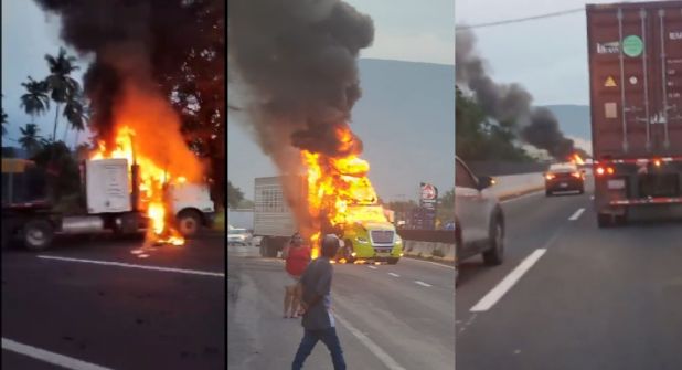 COLIMA.- La tarde-noche de este viernes se registró el incendio de tráileres al menos 3 tráileres y bloqueos en diferentes puntos de la autopista Colima-Manzanillo, en el municipio de Tecomán, videos compartidos en redes sociales se puede ver cuando los camiones están ardiendo en llamas.