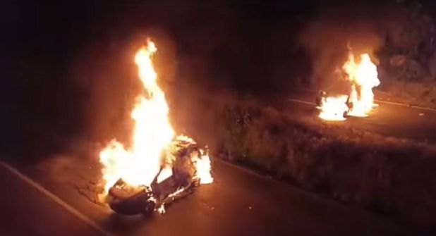 En virtud de que al lugar de la detención llegó un grupo de personas que descendieron de dos autobuses y lanzaron piedras y cohetones, los agentes se vieron imposibilitados de retirar la unidad de la empresa de agroquímicos, así como de su vehículo oficial que fue averiado tras ser impactado en la persecución; minutos después se reportó el incendio de ambos vehículos.