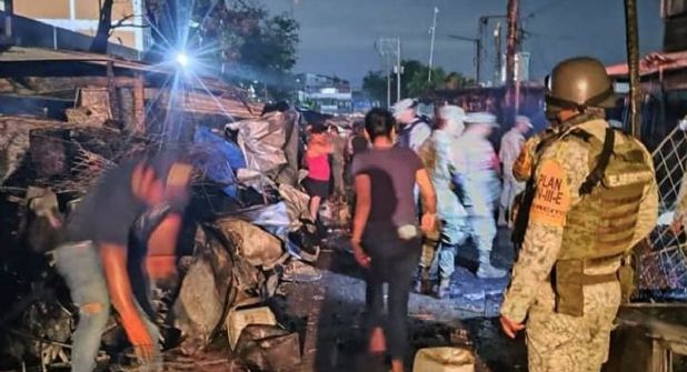 Muy temprano personal de peritos en materia de criminalística de campo e incendio y explosiones; así como, agentes de la PIM de la FGE Guerrero realizan las investigaciones correspondientes para esclarecer los hechos.