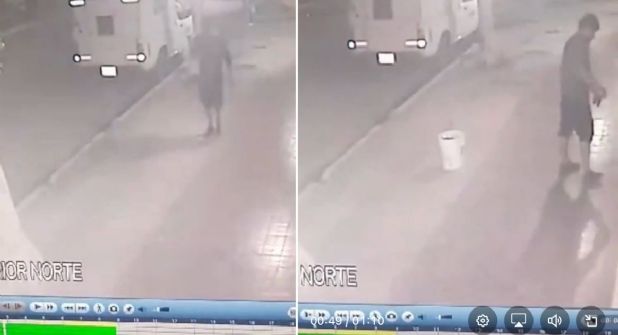 Las cámaras de video registraron que varias personas descendieron del auto; entre ellas, un individuo vestido con shorts y camiseta, que llevaba una cubeta en la mano. Después de detenerse un momento en la banqueta, sacó la pistola de plástico que tenía fajada y la colocó en la puerta del diario.