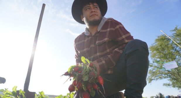 Raudales de luz los sorprendió hormigueando el campo, haciendo hendiduras en la tierra y sacando rábanos. Como quien desentierra un tesoro, cada pieza era presumida y apilada delicadamente.