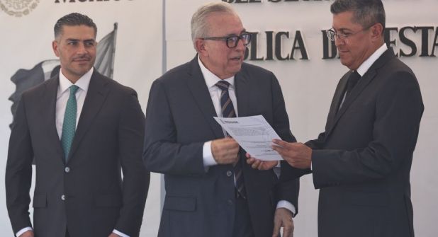 "Me ha tocado ahora tomar la protesta a tres secretarios que han derivado de una propuesta hecha por el mando superior", expresó el gobernador Rocha Moya durante la ceremonia protocolaria.