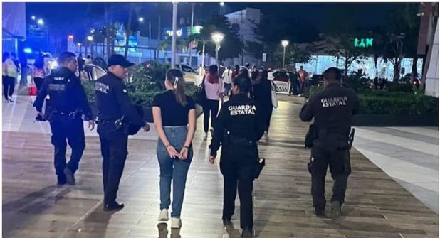 En redes sociales se difundieron imágenes de la joven, vestida con jeans, blusa negra y tenis, arrestada por 4 elementos de la Guardia Estatal (tres hombres y una mujer). La joven salió de la tienda esposada y bajo custodia de policías estatales que llegaron al centro comercial.