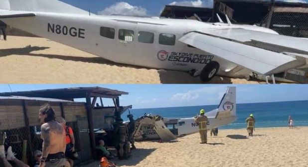 OAXACA.- Una avioneta con 17 pasajeros que realizarían paracaidismo aterrizó de emergencia en la playa Bacocho, Puerto Escondido. El saldo fue de varias personas heridas y una muerta, que de acuerdo con los primeros reportes era un bañista.