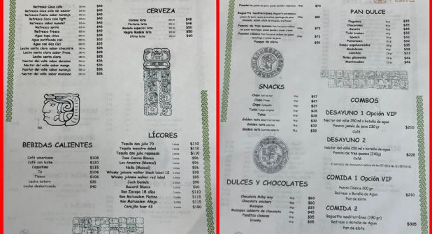 - Desayunos y comidas VIP:* donde los pasajeros pueden disfrutar de opciones como un desayuno que incluye jugo o botella de agua, panini de jamón de pavo y café por $210 pesos. Los combos VIP varían en precio hasta los $305 pesos, dependiendo de la selección de alimentos.