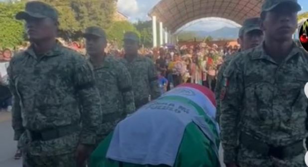 El comandante Paulino Pérez Revilla fue despedido por la gente que lo conoció y convivió con él. En el centro del pueblo seis elementos del Ejército hacían guardia de honor al féretro de Pérez Revilla, cubierto con una bandera.