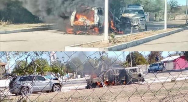 Las imágenes captadas por habitantes de la zona muestran al menos una camioneta prendida en llamas y se pueden escuchar las detonaciones de arma de fuego, de grueso calibre.