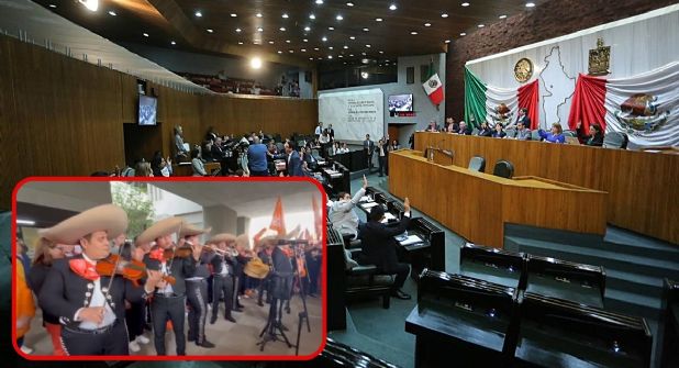 MONTERREY. - Aspirantes a diputados locales por Movimiento Ciudadano y su dirigente Miguel Ángel Sánchez llevaron mariachis al Congreso local para que tocarán a los legisladores del PRI y PAN las Golondrinas y Rata de Dos Patas, como despedida porque, dijeron, ya se van en la próxima elección.