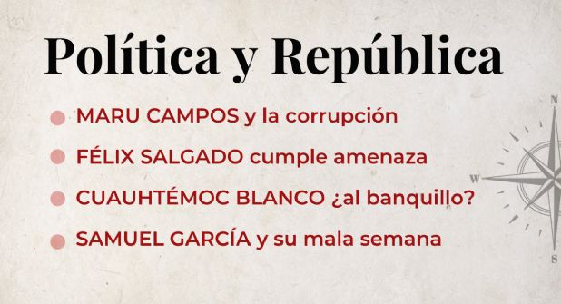 El gobernador de Nuevo León no ha tenido una buena semana. Su suplente como candidato a la presidencia de la República, Jorge Álvarez Maynez, parece que no levanta, al contrario, ha perdido arrastre y puntos que habia logrado acumular el gobernador fosfo fosfo; luego, lo volvieron a exhibir en Nuevo León con más contratos que ha dado su gobierno a la empresa donde justamente García es socio. Y para rematar, el Tribunal Electoral del Poder Judicial de la Federación repuso la alianza del PRI, PAN y PRD, que MC, el partido del gober quería deshacer. Arráncate compadre.