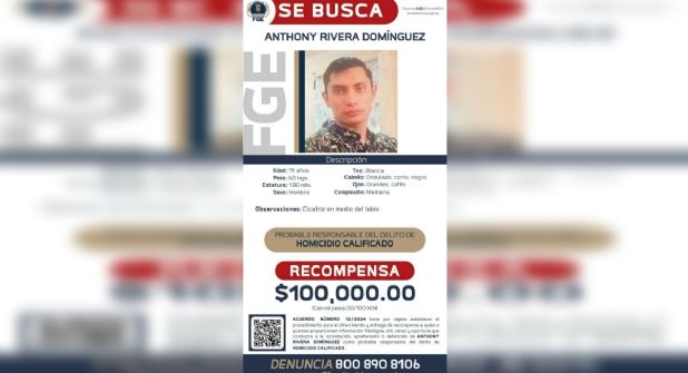 El fiscal, Adrián López Solís, informó que se trata de Manuel Anthony Rivera Domínguez, por quien se ha ofrecido una recompensa de 100 mil pesos a la persona que proporcione información que contribuya a su detención para ser presentado ante el Juez de Control que lo reclama.