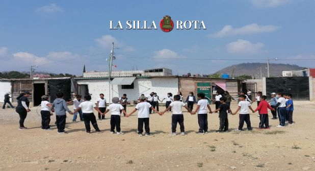 Es tiempo del recreo. Los alumnos patean una pelota que, cada que pega con el suelo, levanta un fino polvo. Otros prefieren sentarse donde pueden: en el piso de tierra, la mayoría, o en la única tabla con blocks que hace las veces de una banca. Pocos se quedan en sus aulas, pues el techo de lámina les genera más calor, y prefieren estar afuera.