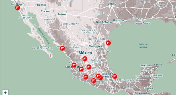 Las principales ciudades de estas entidades en donde estas bandas delictivas ejercen control sobre las mercancías incluyen Culiacán, Veracruz, Matamoros, Reynosa, Irapuato, León, Morelia, Guadalajara, Zapopan, Zacatecas, Tijuana, Tepic, Teloloapan, Cd. Altamirano y Arcelia.