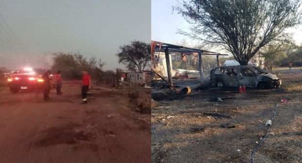 La improvisada vivienda terminó en cenizas al igual que una camioneta que estaba estacionada en las afueras por lo que fue necesario utilizar varias motobombas para sofocar la conflagración.
