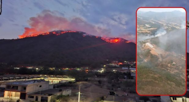 Apoyados por un helicóptero que realizó un sobrevuelo para evaluar la zona afectada y soltar descargas de agua, mientras 105 brigadistas de la agrupación Coyotes, Conafor, Bomberos y Protección Civil estatal, además de elementos de Seguridad Pública municipal y voluntarios de la región, combaten el incendio en dos frentes, informó esta mañana el gobierno estatal que aseguró que no existen viviendas en riesgo ni personas lesionadas.
