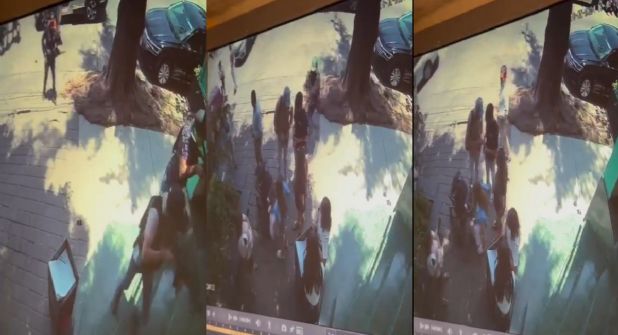 En las imágenes se ve que la familia sale del restaurante, cargan una carriola, la ponen en el piso mientras conviven unos minutos, en unos instantes un sujeto encapuchado con un arma larga se acerca a donde está la familia, jala a Raúl, quien vestía un pantalón de mezclilla, gorra y suéter color café.
