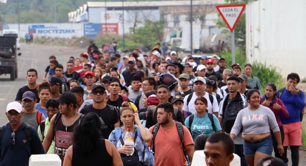 La caravana avanza en medio del flujo migratorio récord en la frontera sur de México, que registró un récord de 782,176 migrantes irregulares en 2023, una subida anual del 77 %.