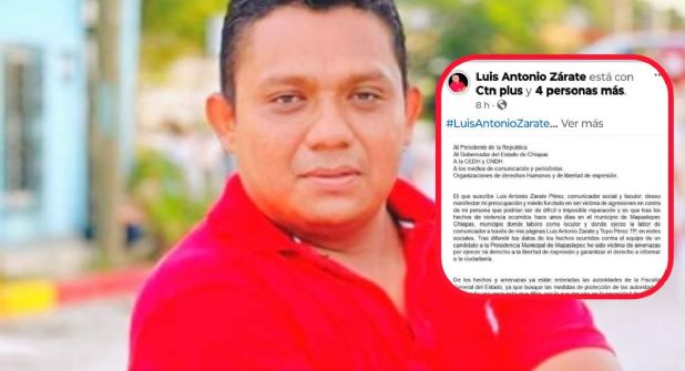 TUXTLA GUTIÉRREZ. - Luego de dar a conocer la noticia sobre la matanza de cinco colaboradores del candidato de Morena al Ayuntamiento del municipio de Mapastepec, el pasado domingo por la madrugada, Luis Antonio Zárate Pérez, periodista de esa región, recibió amenazas por parte del crimen organizado.