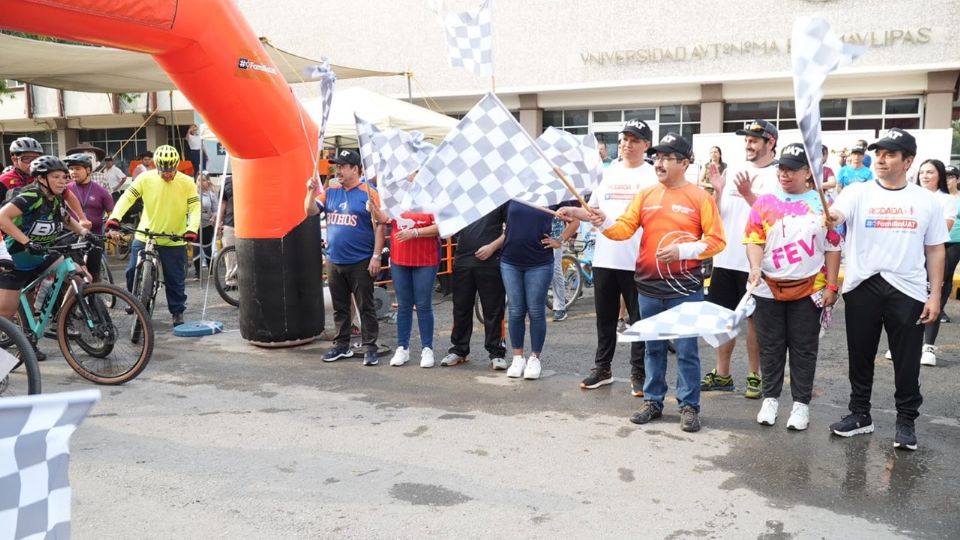 Desde temprana hora los ciclistas arribaron al punto de partida, en el 8 y 9 Matamoros, donde estuvo presente el rector de la UAT, MVZ Dámaso Leonardo Anaya Alvarado, quien, acompañado de su esposa, la Lic. Isolda Rendón de Anaya, inauguró el evento y dio el banderazo de salida.
