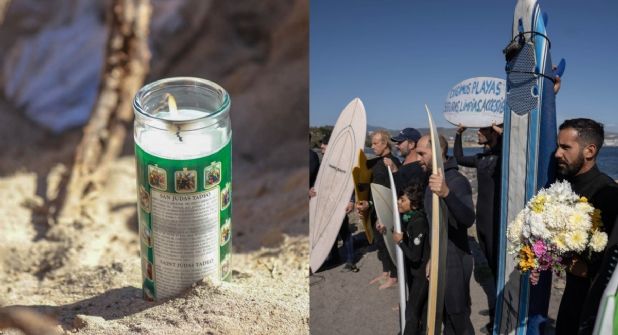 Además, surfistas realizaron en la playa San Miguel una “Remada”, un acto simbólico para despedir a los tres turistas extranjeros que practicaban ese deporte.
