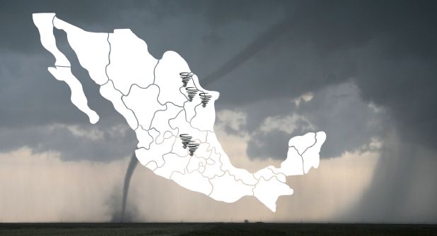 Por el choque de corrientes de aire en el norte del país, la Conagua pronosticó y emitió alerta por la posible formación de torbellinos o tornados en algunas zonas de Chihuahua, Coahuila, Nuevo León y Tamaulipas.