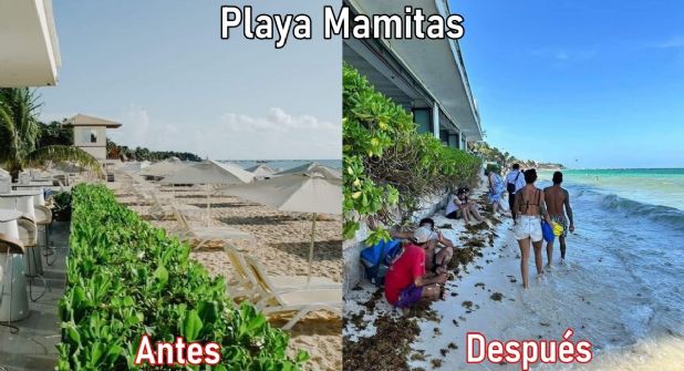 Sin embargo, este paraíso podría estar a nada de desaparecer pues debido a la construcción de grandes inmuebles, en la Playa Mamitas el mar ha comenzado a “tragarse” la costa, por lo que ya no hay lugar para tomar el sol y los recintos que se encuentran cerca están a nada de que el agua los remueva.