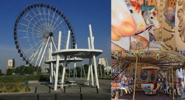 El carrusel veneciano, instalado en abril, tiene acabados en madera, dos niveles y más de 50 caballos con movimiento ascendente y descendente; además tiene cuatro góndolas, cada una para cuatro personas.