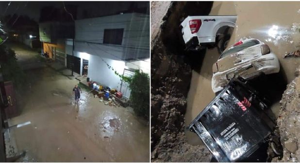 Sin embargo, las imágenes que generaron asombro fue el de conductores que, tras intentar atravesar calles o avenidas con corrientes pluviales, fueron arrastrados, como ocurrió en la avenida principal de la colonia Infonavit Grijalva, en donde un taxi y un auto particular “corrieron con esa suerte” en el mismo punto.