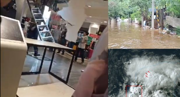 Entre los daños reportados, en el Hospital T1 del IMSS se filtró el agua en el interior de la sala de espera. Y en el centro comercial Altabrisa al norte de la capital yucateca se derrumbó un plafón del techo. Ambas situaciones fueron captadas en video.