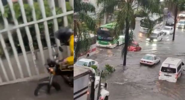 Videos en redes sociales dieron cuenta de que los coches parecían lanchas por el nivel que alcanzó el agua de lluvia en esas avenidas.