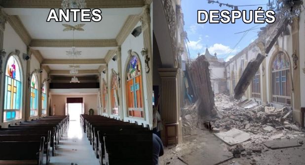 "Gracias a Dios no había nadie adentro de la Iglesia en ese momento, se les pide de manera atenta a la ciudadanía mantenerse a distancia del edificio ya que lo que quedo de pie puede derrumbarse también por lo dañado que está", recomendó el funcionario.
