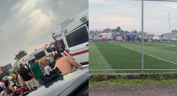 CUERNAVACA, Morelos. - Un rayo cayó en un campo deportivo, situado en colonia Antonio Barona en el municipio de Cuernavaca, y alcanzó a cinco jugadores y a un portero, dejándolos con lesiones, algunos fueron trasladados al hospital y de ellos uno se reporta crítico.