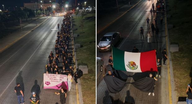 Con veladoras blancas, coronas fúnebres y vestidos de negro, al simbolizar la “muerte” del estado de derecho, realizaron la marcha alrededor de la macroplaza y culminaron con una concentración en la Explanada de los Héroes frente al palacio estatal.