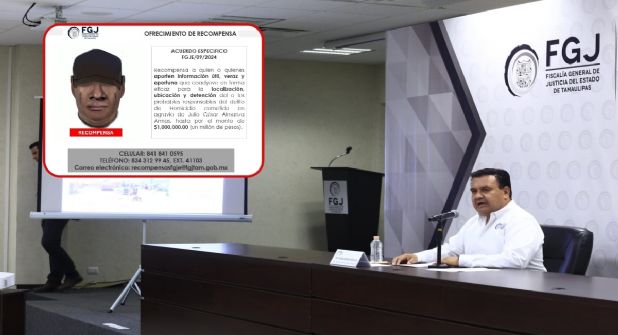 CIUDAD VICTORIA, Tamaulipas. - En conferencia de prensa, el Fiscal General de Justicia de Tamaulipas, Irving Barrios Mojica, presentó avances en las investigaciones en torno al homicidio de Julio Almanza Armas, presidente de la Federación Estatal de Cámaras de Comercio y Servicios Turísticos, registrado el 30 de julio en Matamoros. También dio a conocer el ofrecimiento de una recompensa de un millón de pesos para quien proporcione datos que ayuden a la localización de él o los presuntos responsables.